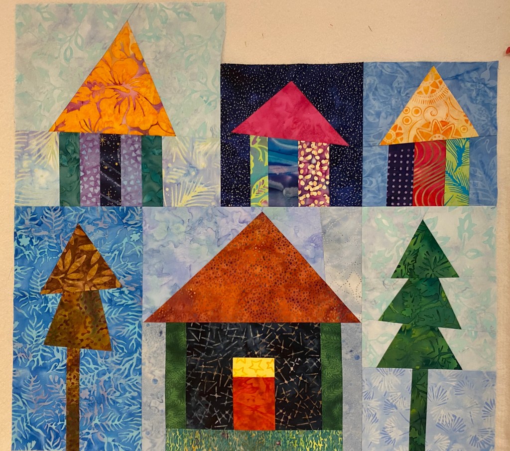 More random blocks! These were intended for a much larger quilt, but I decided these enough for a wall-hanging in my new home! I’m planning to add a small embroidery – “Home” – on the top, and also hand quilt it. Looking for hand quilting videos and thread.