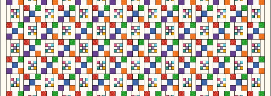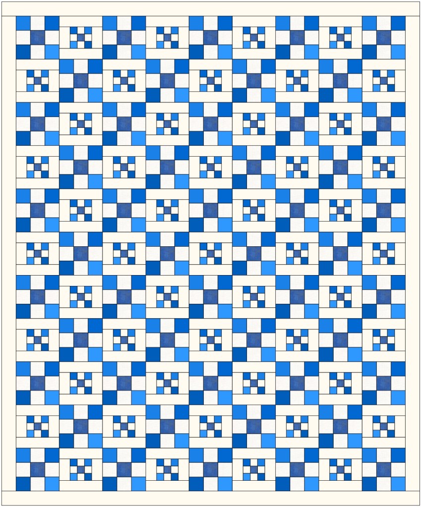 This is basically an 9-patch quilt that forms a chain using 2.5″ square – 9 patches; alternating with 1.5″ square 9-patches. Basic measurements and fabric requirements will be posted this week. This pattern can be easily adopted to a single color way, using multiple shades and a uniform background. I prefer using a variety of neutrals or “low volume” prints as background in my quilts to give them more dimension and interest. If you do chose a one- or two- color scheme for this quilt, make sure to have enough variety of medium-dark prints to make it fun!