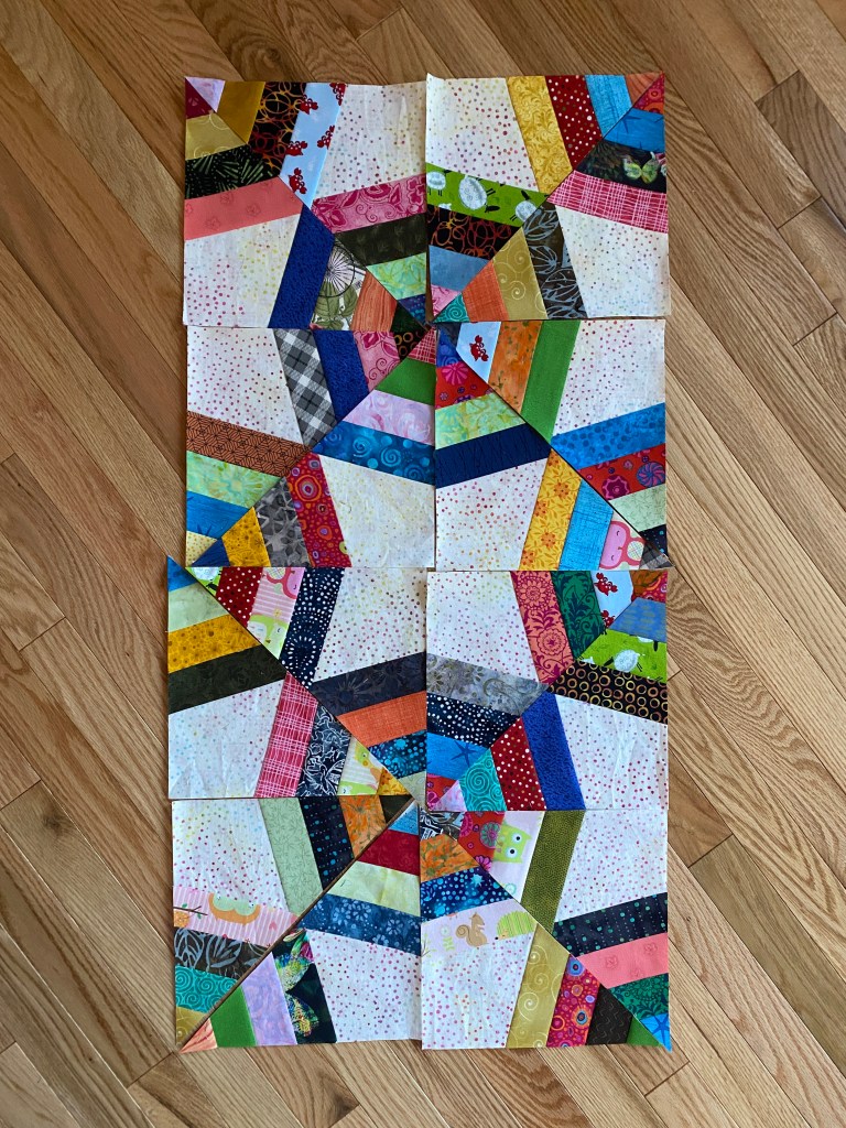 This is the final layout. A good lesson learned here – don’t be in a rush to start your quilt assembly before layout out all blocks! I have put together 3 blocks before realizing I didn’t like the original layout. I will now have to be more creative about how to assemble the rest of the flimsy.