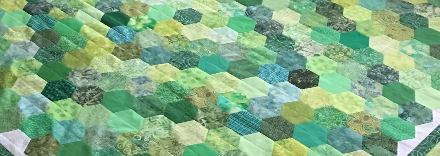 In April of 2019 I made a quilt for my son for his college graduation gift. He loves green, and I cut out hundreds of half hexagons from my extensive stash of green fabrics. I had to lay them out in rows on my living room floor, alternating light, medium and darks in a diamond… Continue reading Hexie Madness