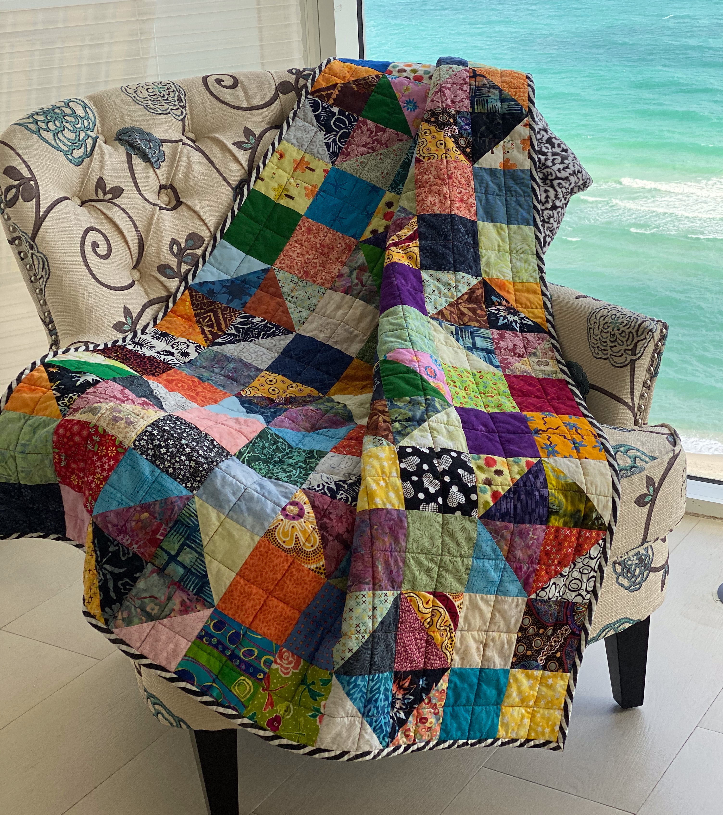 I made a new scrappy throw for my Mom. She really likes these small soft quilts!
