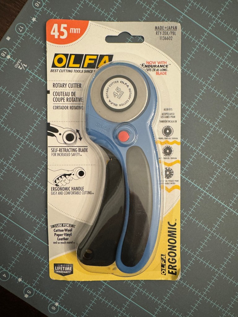 I’ve rediscovered my ergonomic Olfa cutter! It has helped my injured wrist feel better and I was able to cut fabric again.